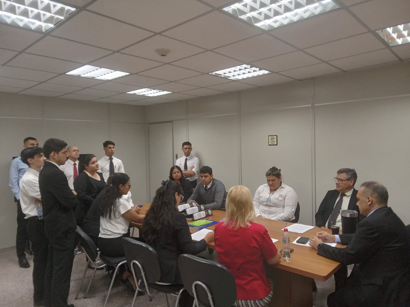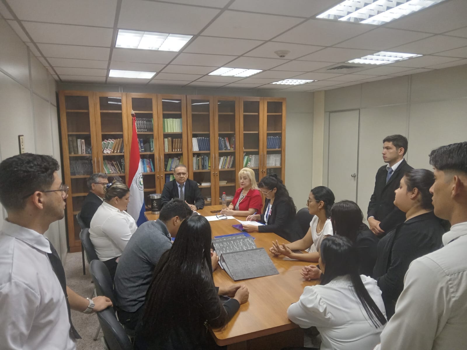 En la fecha los miembros del Consejo de Administración de la Circunscripción Judicial de San Pedro, Magistrados Fernando Benítez Franco, Elber Celedonio Noguera Otto y Elva Verónica Miltos Martínez, mantuvieron una reunión con los alumnos de la Carrera de Derecho de la Universidad Nacional de Asunción Filial San Pedro, quienes están realizando su pasantia supervisada dentro de la institución. Los mismo estuvieron acompañados de la Coordinadora de pasantias la Abg. María Isabel Bénitez.
