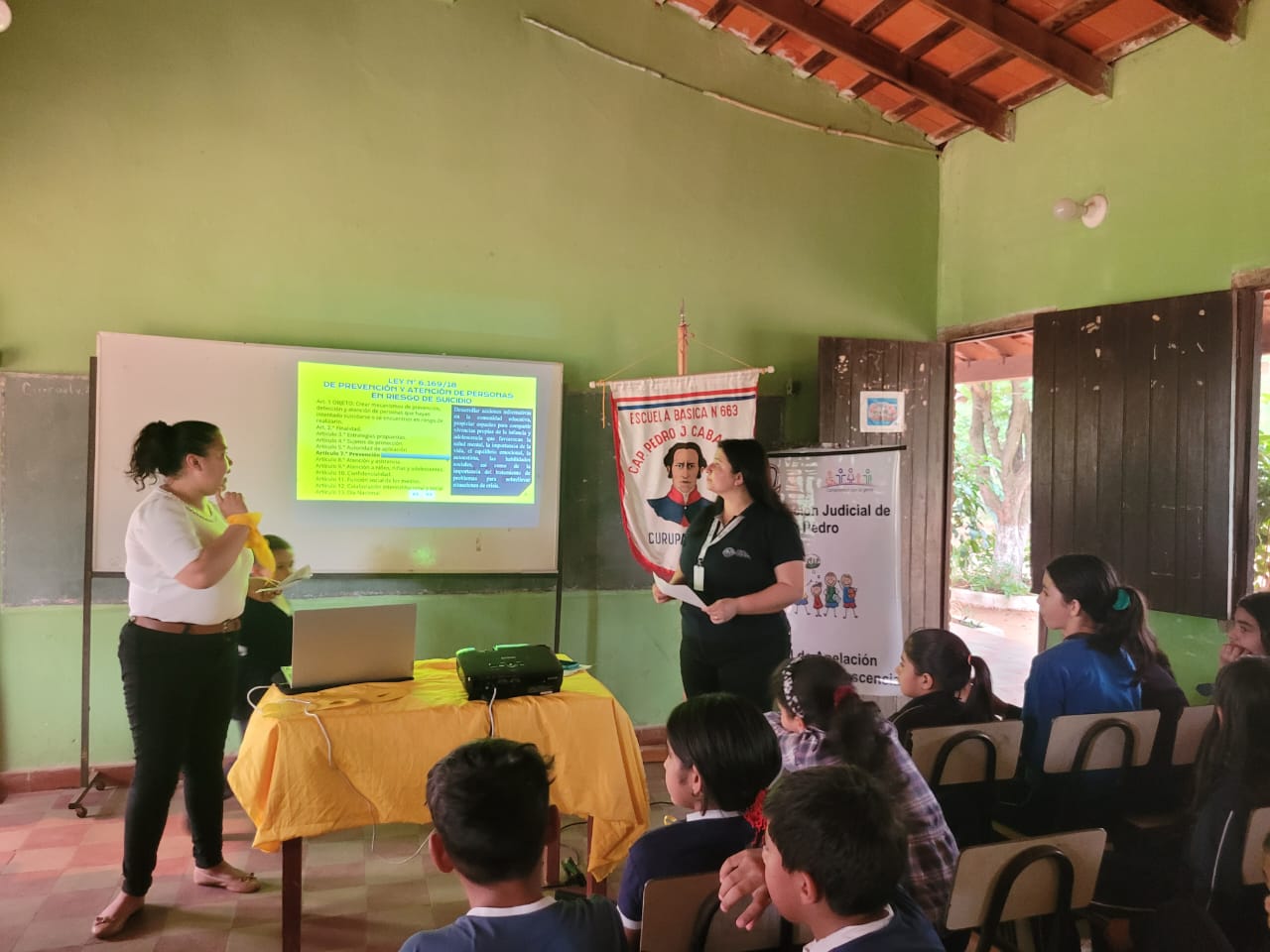 Este miércoles 25 de setiembre, en la Escuela Básica N° 663 Capitán Pedro Juan Caballero de Curupayty, se realizó una charla dirigida a alumnos y padres de familia de la institución sobre “Suicidio, Bullying, violencia juvenil, crianza positiva, prevención de consumo de drogas y consecuencias penales” dentro del marco del Plan Nacional contra el abuso de drogas SUMAR conformado por ministerios e instituciones públicas, con la presencia de miembros del Tribunal de Apelación de la Niñez y Adolescencia de la Circunscripción Judicial de San Pedro, a pedido de la directora de la institución educativa Lic. Zunilda Ocampos Sosa.
