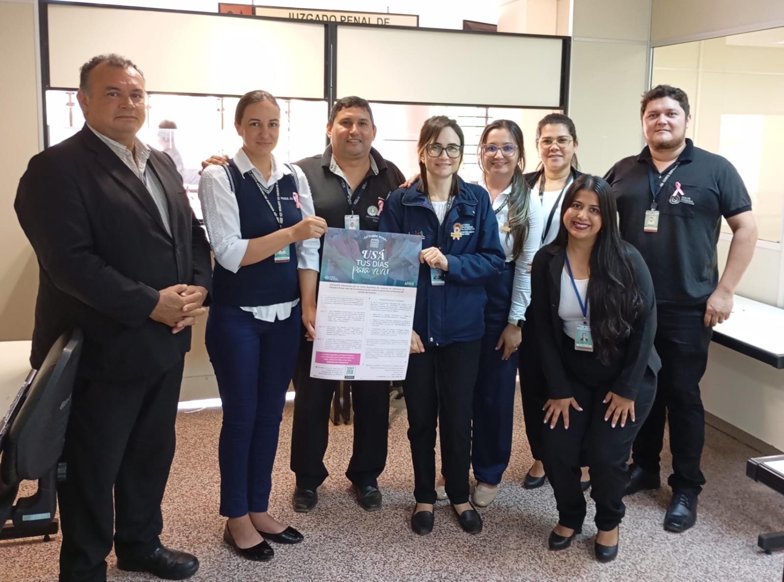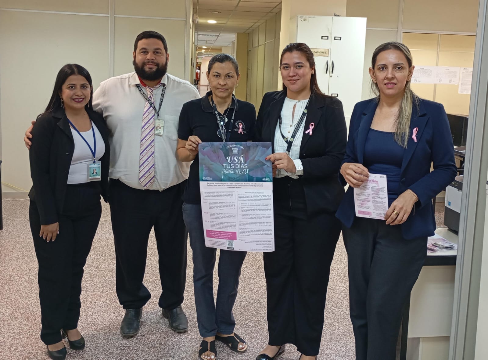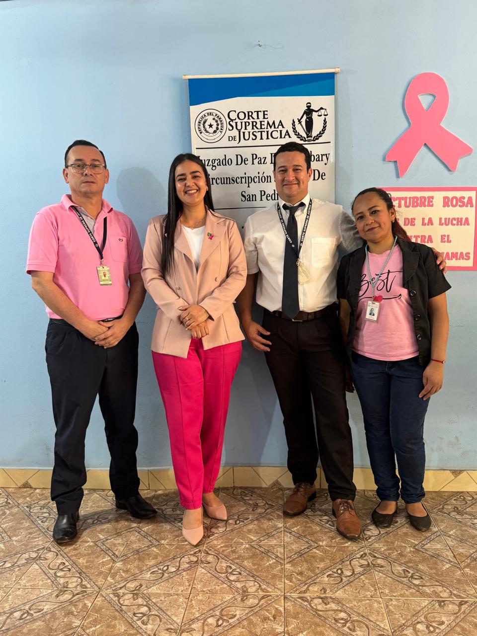 En el marco del mes de conmemoración del Día Mundial de la Lucha y Prevención contra el Cáncer de Mama, en la semana, funcionarias de la Oficina de Recursos Humanos de la Circunscripción Judicial de San Pedro entregaron lazos rosados que recuerdan la importancia de los controles preventivos y materiales informativos a funcionarios del Poder Judicial, con el propósito de generar conciencia y promover que las mujeres se realicen los controles rutinarios para un diagnóstico precoz, fundamentales ante esta enfermedad.