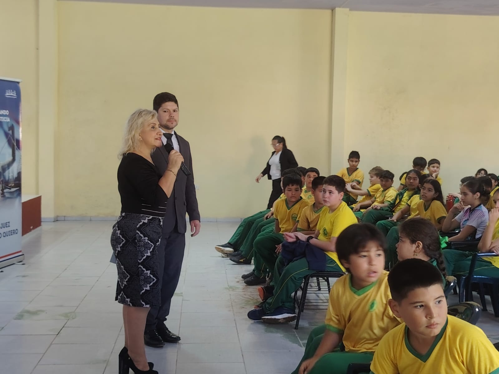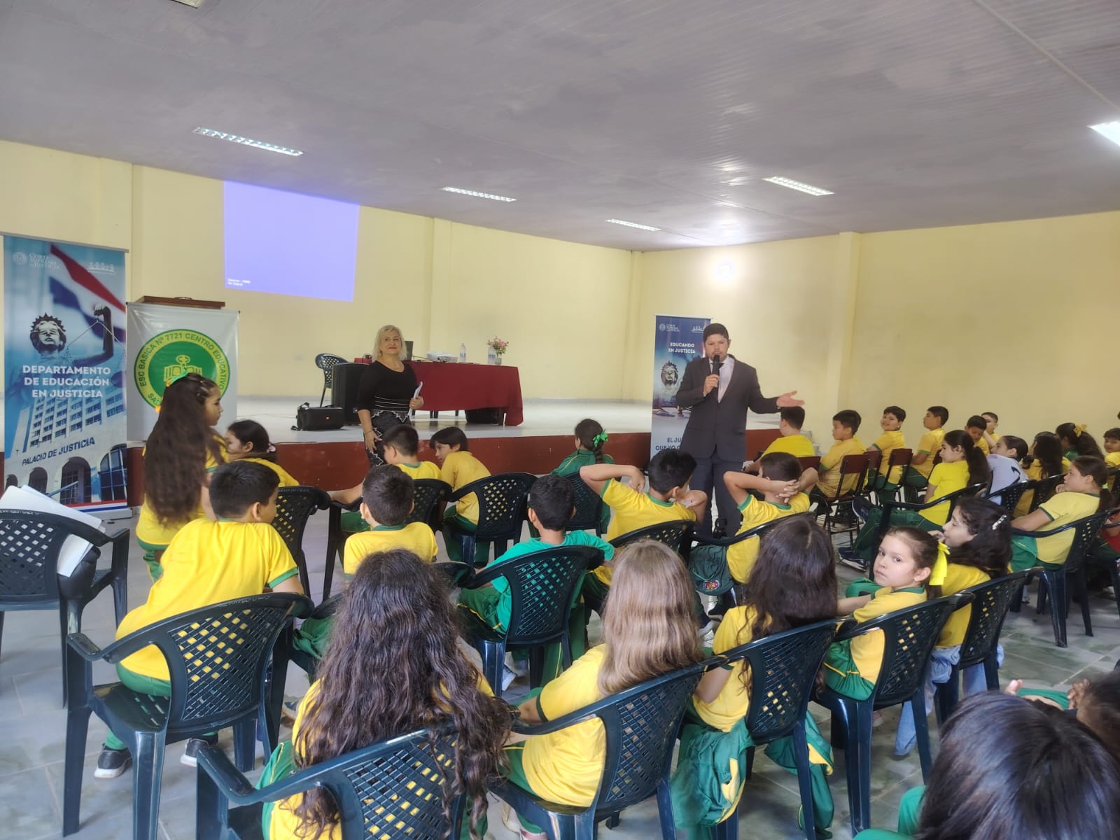 La jornada inició con las palabras de bienvenida de la Lic. Rosalva Ruiz Díaz, directora de la institución anfitriona, quien destacó la relevancia de generar espacios de aprendizaje que acerquen a los estudiantes al conocimiento de sus derechos y deberes. Seguidamente, el magíster Aldo Ávalos, coordinador general del Departamento de Educación en Justicia de la Corte Suprema de Justicia, realizó la presentación del programa, resaltando su objetivo de promover una cultura de legalidad, respeto y participación ciudadana desde edades tempranas.