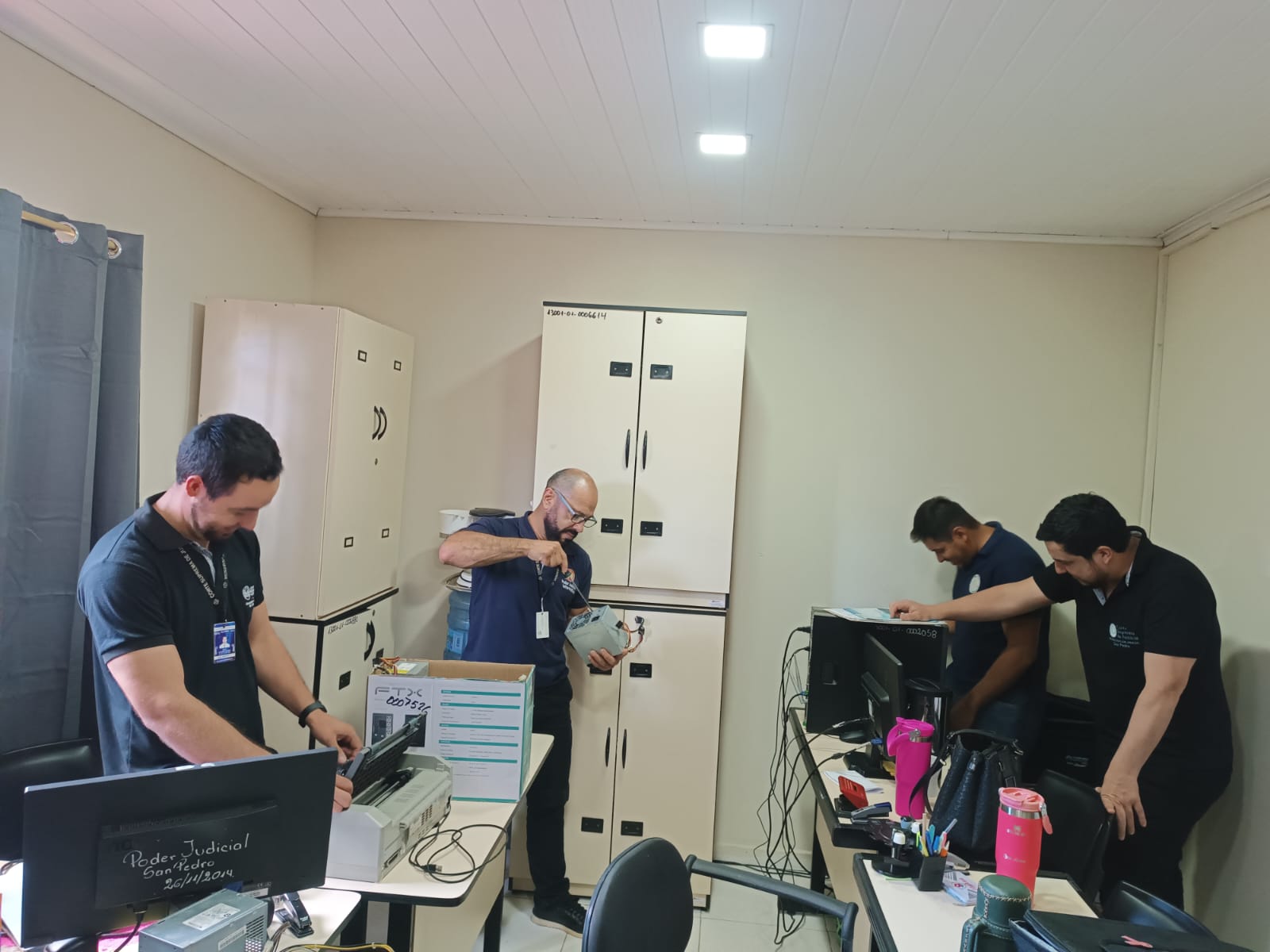 Por disposición del Consejo de Administración, funcionarios judiciales realizaron trabajos de mantenimiento y mejora en diversas dependencias del Poder Judicial. Entre las acciones ejecutadas se incluyen la instalación de equipo de aire acondicionado en la Oficina de Recursos Humanos, el mantenimiento de instalaciones eléctricas y la optimización de equipos informáticos en la sede del Juzgado de Primera Instancia de San Estanislao.