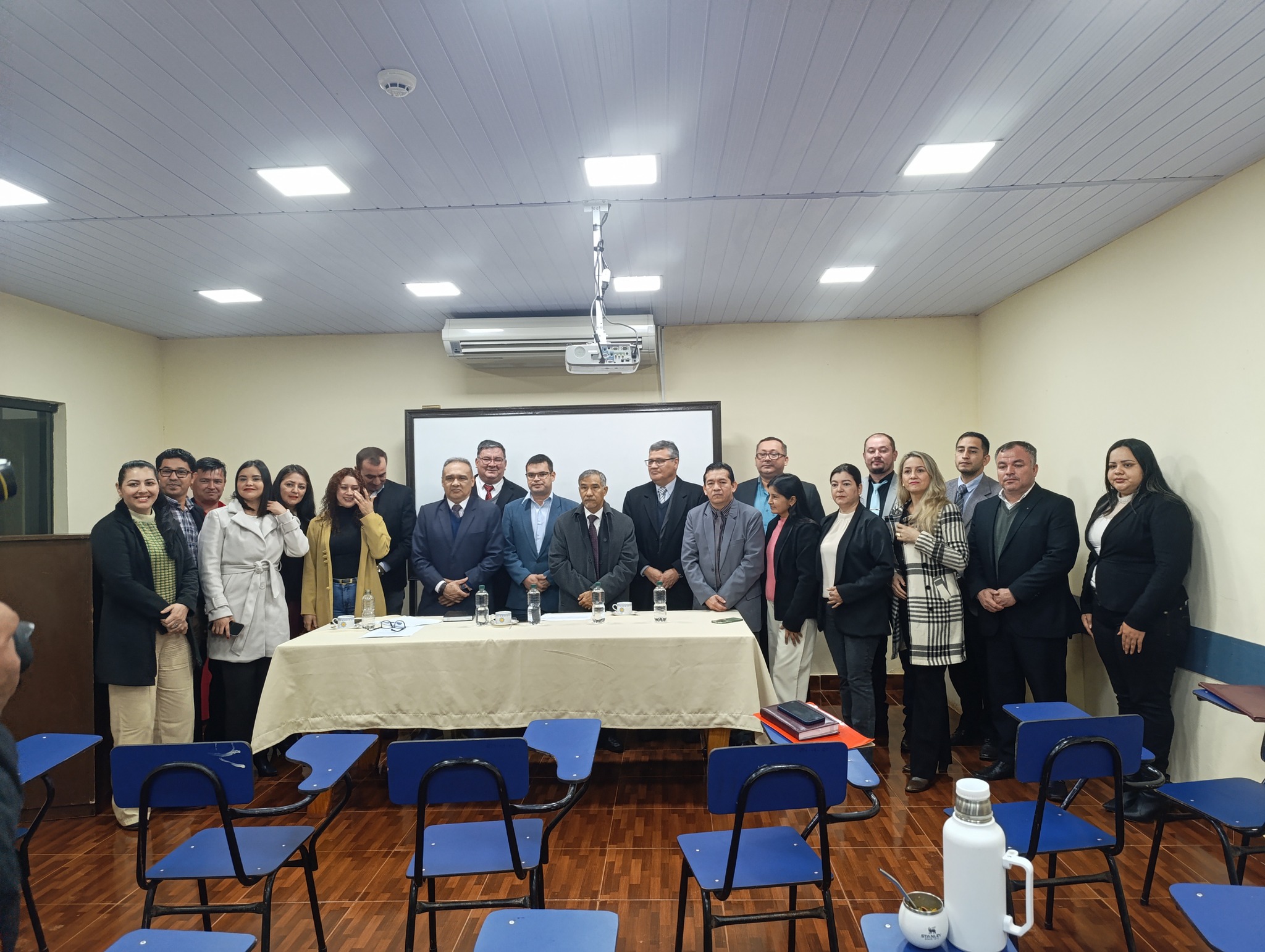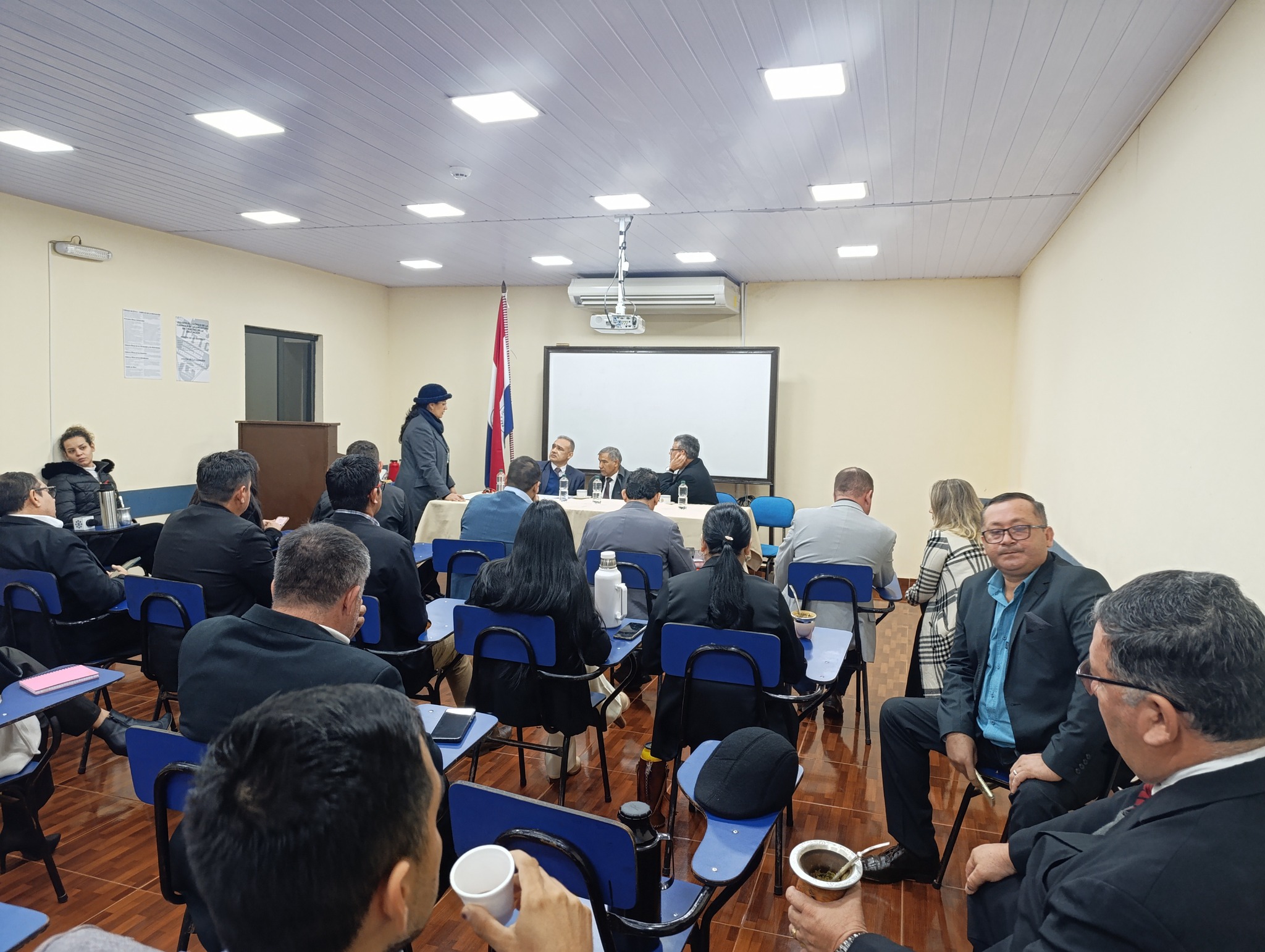 El Excelentísimo Ministro de la Corte Suprema de Justicia y Superintendente de la Circunscripción Judicial de San Pedro Prof. Dr. Manuel Ramirez Candia y los miembros del Consejo de Administración Magistrados Elber Noguera Otto y Fernando Benítez Franco se reunieron con gremios de abogados de Santa Rosa del Aguaray y con magistrados de los juzgados de la zona.